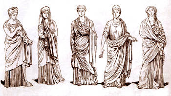 12. Весталки - жриці Вести, богині домашнього вогнища і цнотливості. Плащ і покривало поверх довгої туніки.