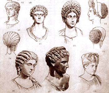 Зачіска римлянок спочатку була досить скромною, але за часів імперії з'являються все більш пишні і складні споруди, для створення яких була потрібна допомога кількох рабинь.