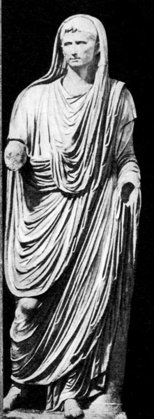 2. Понтифік (pontifex) - жрець, що здійснює жертвопринесення. Тога покриває і голову.