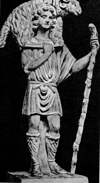 6. Раб в високо підперезаний туніці і сандалях з обмотками.