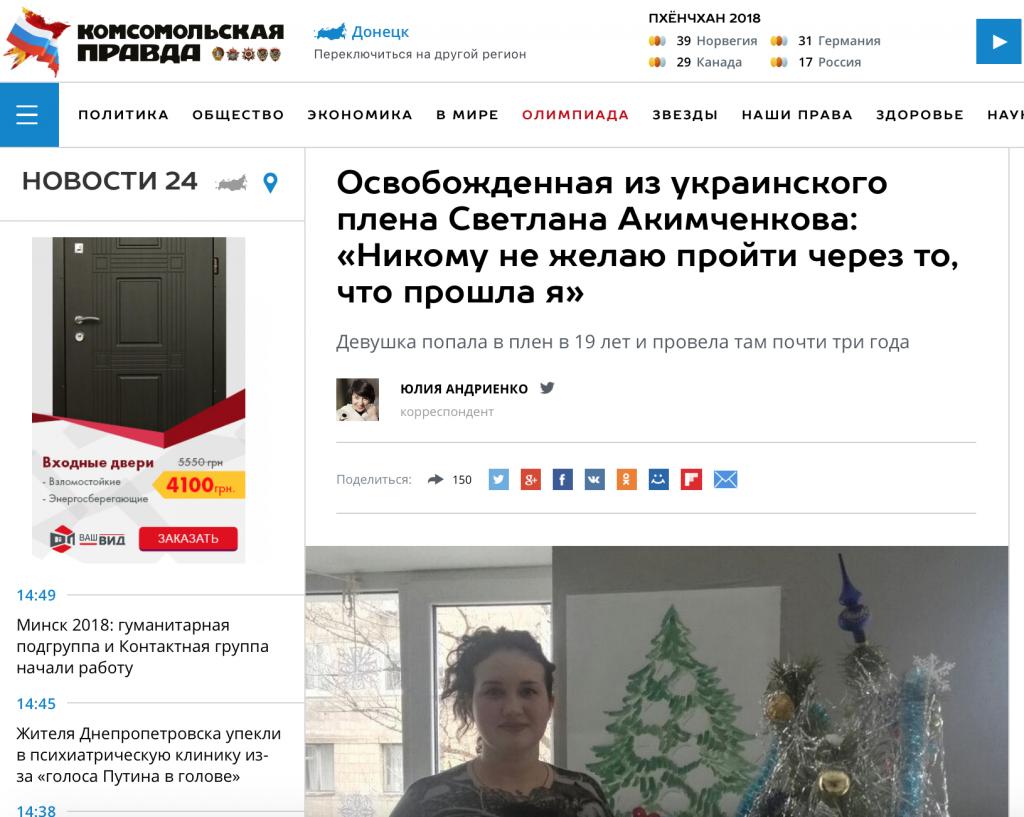 Він звернув увагу на статтю в "Комсомольской правде", в якій розповідається про те, як донеччани в єдиному пориві кинулися допомагати колишньої "ув'язненій фашистів".