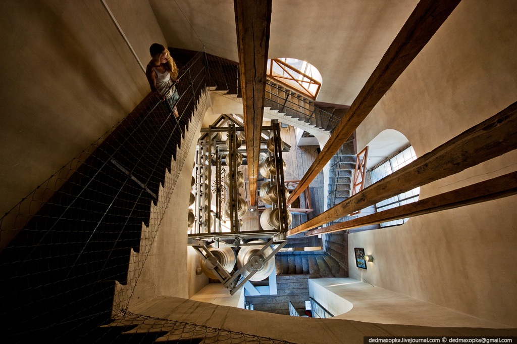 На висоті 16 м починається шахта годинникового механізму, що йде вгору на 30 м. Аж до XX століття всередині шахти піднімалися й опускалися гирі, забезпечуючи завод годинах.