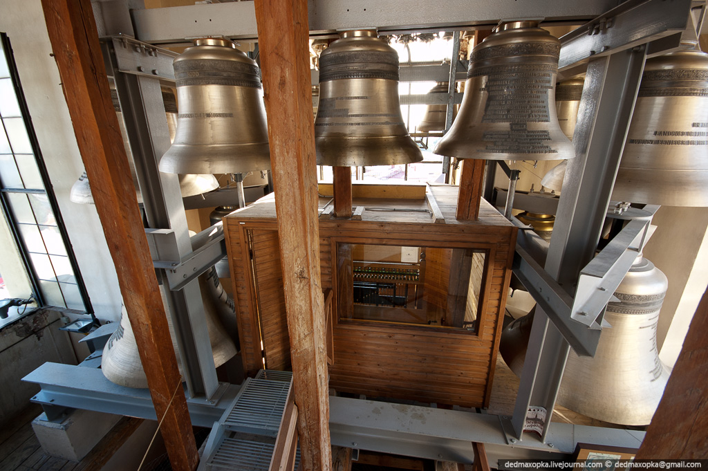 Зараз в дзвіниці Петропавлівського собору перебувати унікальний за кількістю і різноманітністю набір дзвонів; справжні голландські дзвони XIX-XX століть, сучасні фламандські дзвони. В цілому на дзвіниці близько 130 дзвонів.