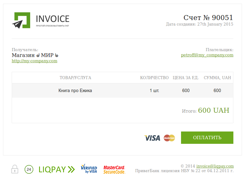 Отримавши Invoice, покупець просто переходить за посиланням з листа і здійснює онлайн-оплату без введення платіжних реквізитів компанії.