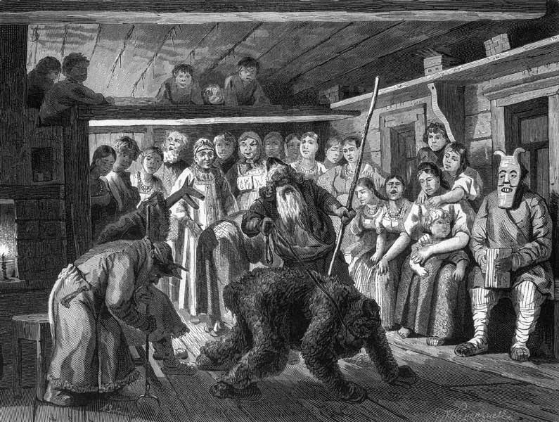З наближенням весни справляли проводи зими-морени зі спаленням солом'яного опудала зими-Кострома - то був відгомін давнього звичаю людських жертвоприношень (за християнським календарем це свято відповідав масниці). На одностайну показання церковних істориків, в ці дні чоловіки і жінки всіляко пошаліли, веселилися і розпусничали, чому сприяв звичай рядитися - надягати маскарадні костюми, звичайно страхітливі.