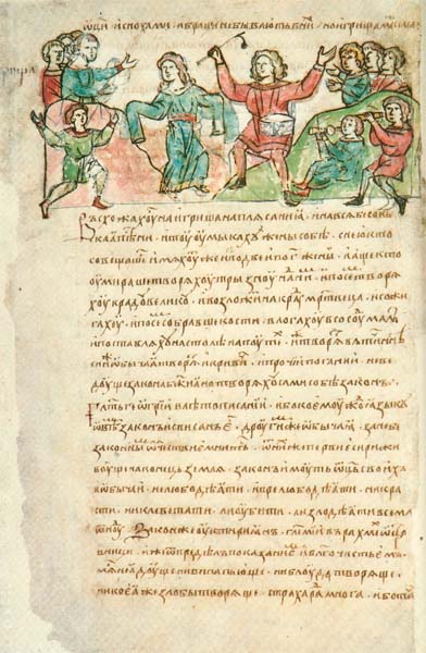 Свята та весілля справлялися з великим радістю. «Дідькове спів і блудне знущання» - тодішні сороміцькі жарти та оповідання - були неодмінною приналежністю кожного бенкету. З слов'янських музичних інструментів того часу згадуються якась труба довжиною більше двох ліктів і восьміструнние приємній із плоскою внутрішньою стороною. Хмільне питво ще більше розохочувало бенкету. Гардізі записав, що у слов'ян водиться багато меду і вина: в однієї людини буває по сто джбанів меду. А Ібн Фадлан спостерігав, як купці-руси віддавалися пияцтву дні й ночі безперервно, так що іншим траплялося і вмирати «з кухлем в руках». Так що князь Володимир говорив щиру правду, коли стверджував знамените: «Русі є радість пити, не можемо без того бити».
