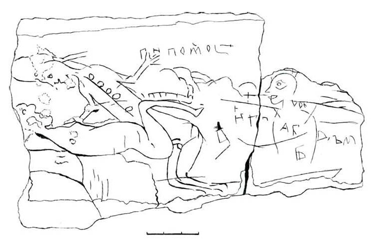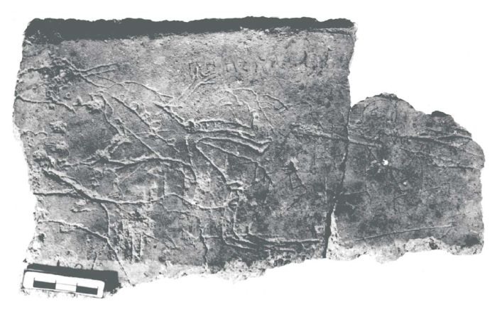 Графіті на фрагменті давньої штукатурки Золотих воріт у Києві (XI ст.)