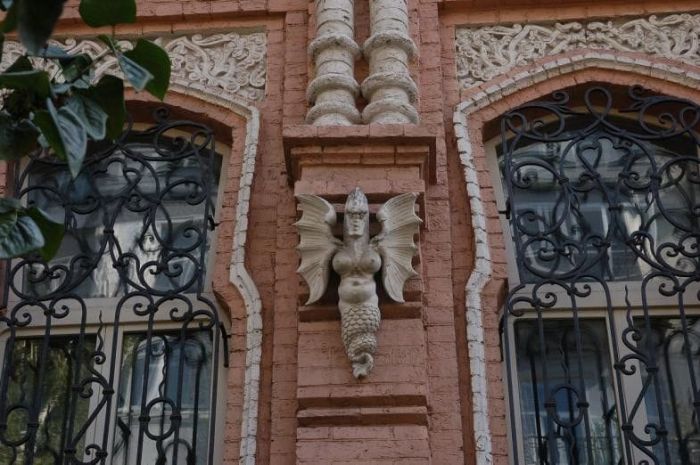 Але головне достоїнство будинку - прикраса його даху і стін скульптурами, що представляють собою переплетення екзотичних тварин, русалок, фантастичних істот, морських гадів, жаб, змій. Звучить не дуже привабливо, але поверти - вражає.