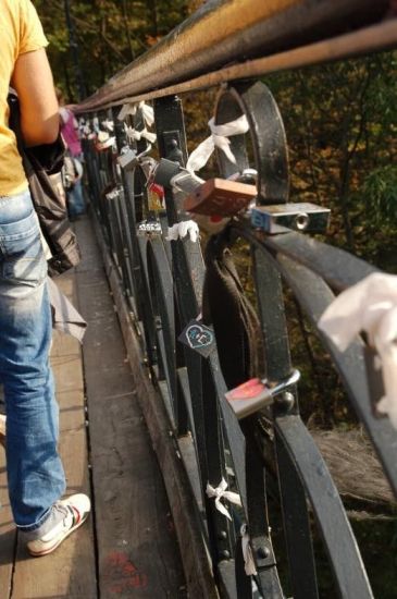 Я з Києва, що стосовно замків на мосту Закоханих то їх познімали, через те, що їх було занадто багато і це додавало вагу моста, бояться що б не впав.