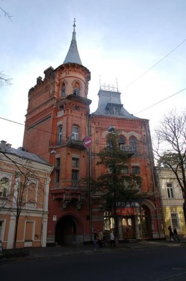 Розвернувшись на 180 градусів і пройшовши трохи по Володимирській вулиці, наткнулися на кутовий високе яскраво-червона будівля з башточкою. Це Будинок Сироткіна.