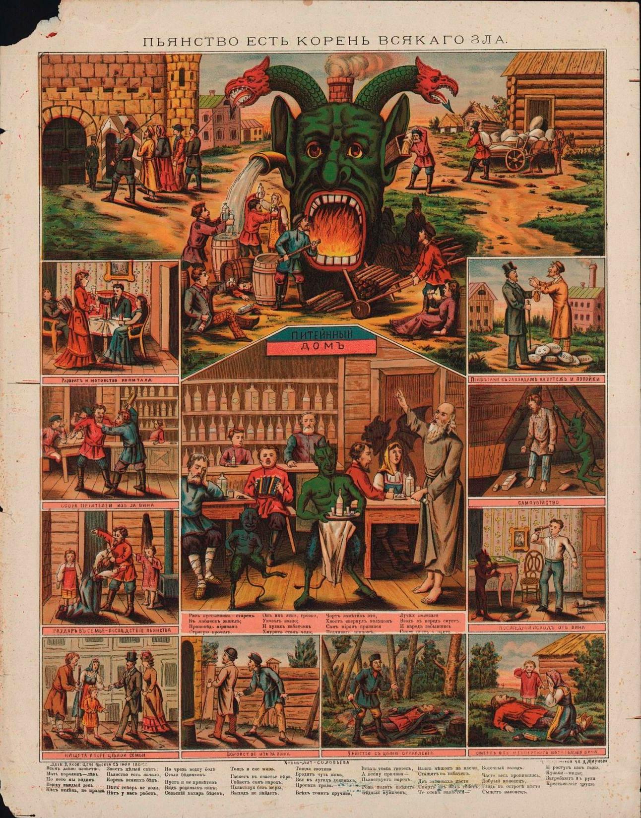 Пияцтво корінь усякого зла: дореволюційні російські антиалкогольні плакати