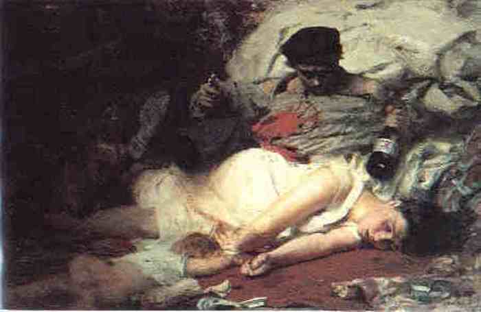 Робочий люд справляє свята не менш "гідно": "Хто знає життя околиць Москви, хто бачив, як в свята і в дні після свят ходить тут п'яними натовпами майстровий люд, хто був свідком всіх звичайних тут бійок і сварок ..." [15 ] Неважко уявити, які стосунки складалися між подружжям в сім'ях таких "горе-робітників": їхні жінки, та діти боялися п'яного чоловіка і батька, який і бив їх, і знущався над ними; часто доводилося голодувати, тому що заробіток чоловік пропивав. І таких сімей в той час була переважна більшість. Пияцтво доходило в людях все людське, і заради ще однієї чарки вже зовсім очманілий чоловік був готовий на будь-які звірства навіть проти своїх рідних.