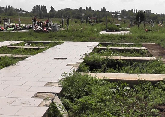 Фотографії, безумовно, добре ілюстрували матеріал. Але бур'ян згодом перетворюється в квітник, і роблять це родичі померлих. Справедливо було б зробити фото вже існуючих могил, а не тільки підготовлених під могили місць. Що стосується керамо-гранітної плитки, то вид на фото представляє незакінчений виробничий процес. Там ведуться ремонтні роботи.