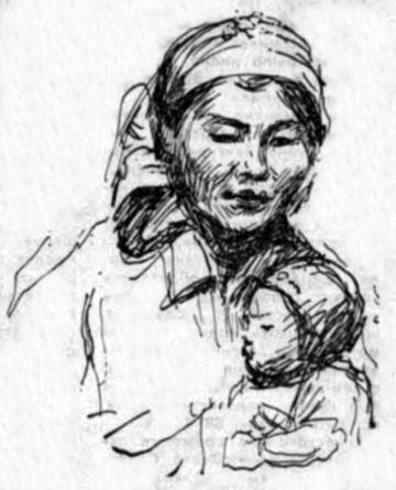 За час численних поїздок по Алтаю у Н.В.Шагаева накопичилося багато колійних альбомів, де він фіксував свої спостереження. Тут жваво схоплені сцени з життя скотарів, мисливців, жінок в обстановці домашнього побуту, дітей серед ігор та занять. Художнику вдається помітити їх природну грацію, красу поз, жестів і в таких невеликих за розміром малюнках передати багатство внутрішнього світу цих людей, що викликає хвилююче почуття у відповідь.