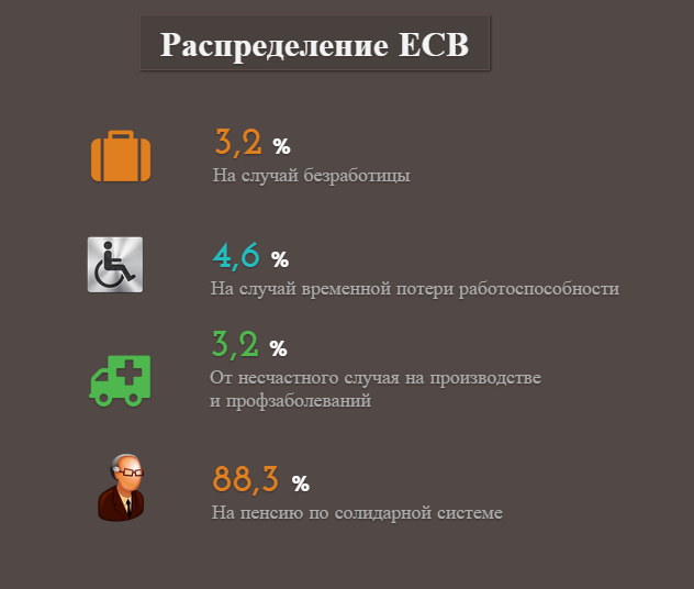 Для працюючого українця ЄСВ становить всього 3,6% від суми нарахованої зарплати. Ці кошти йдуть на державне страхування - тобто на підтримку працівника державними виплатами в разі проблем. Наприклад, нещасного випадку на виробництві або втрати роботи.