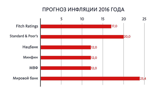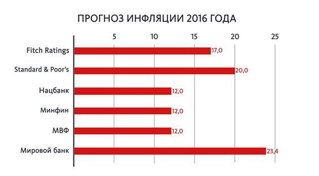 Сьогодні урядові прогнози щодо середнього курсу гривні на рівні 24-25 грн / долар і інфляції 12% виглядають досить оптимістичними. Але ніхто не може гарантувати, що такі показники недосяжні. «При реформуванні української економіки, мирне вирішення проблеми Донбасу, сприятливої зовнішньоекономічної кон'юнктури такі прогнози можуть справдитися», - вважає президент Інвестгруп Тарас Козак.