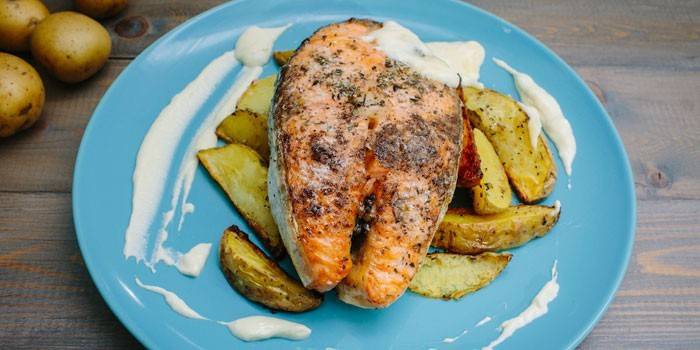 Приготувавши стейки сьомги в духовці з картоплею, ви одразу отримуєте повноцінне блюдо для обіду або вечері. Вже не потрібно думати, що зварити на гарнір. Не бійтеся подати таке блюдо гостям, адже детальний рецепт з фото допоможе вам впоратися з приготуванням без помилок, і делікатес вийде не гірше, ніж на ресторанній кухні.