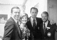 У музеї Зоряного. Командири екіпажів Олексій Леонов (крайній зліва) і бригадний генерал Томас Стаффорд (в центрі)