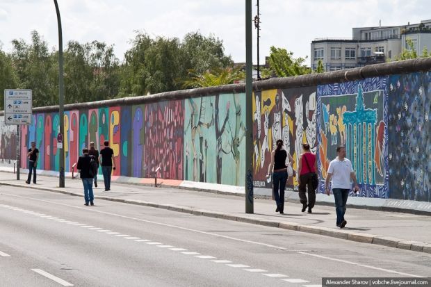Новітня історія теж відзначилася оборонними сверхзаборамі. У минулому столітті особливу популярність мала Берлінська стіна - символ Холодної війни. Її спорудження було розпочато 13 серпня 1961 рік. Більше 28 років - до 9 листопада 1989 року - вона служила кордоном між двома ворогуючими світами - соціалістичним і капіталістичним. Берлін розділили надвоє практично за одну ніч, перегородивши колючим дротом близько двохсот вулиць і провулків. А через місяць кілометра на три вже розтягнувся «бетонний завісу». З року в рік його вдосконалювали, на що було витрачено 150 млн. Доларів. В результаті загальна довжина стіни перевищила 150 кілометрів, висота досягла 4 метрів. У соціалістичному таборі дістатися безпосередньо до самої стіни, не кажучи вже про те, щоб подолати її, практично не представлялося можливим. У різних місцях вона була посилена залізними гратами з сигналізацією і колючим дротом, навченими на людей вівчарками, що курсують по бетонці патрульними машинами, освітленням прожекторів і пішими патрулями, п'ятикілометровий протитанковим ровом, нарешті, контрольної смугою. З протилежного, західного боку, доступ до Стіни був абсолютно вільний. Тут її прикрашали картинами, написами і малюнками, завдаючи їх фарбами з аерозольних балончиків ...