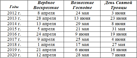 Рухома частина церковного календаря переміщається разом зі змінною рік від року датою святкування Великодня. Сама дата святкування Пасхи визначається згідно з місячним календарем і ряду додаткових догматичних факторів (не святкувати Великдень з іудеями, святкувати Великдень тільки після весняного рівнодення, святкувати Великдень тільки після першого весняного повного місяця). Всі «рухливі» свята відраховуються від Великодня і переміщаються в просторі «світського» календаря разом з нею.