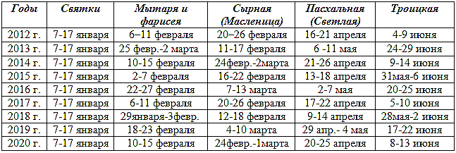 - середа і п'ятниця усього року, за винятком суцільних седмиць і Святок