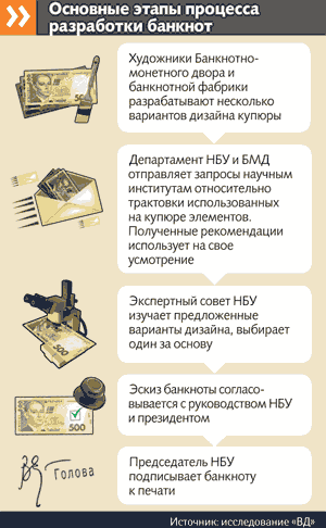 Тому їм, як нікому іншому, відомо, на якому етапі вноситься ті чи інші пропозиції по дизайну банкноти. Вони визнають, що ідея поставити тре кутник з оком народилася в НБУ. І стверджують, що сталося це в відділі дизайну кузні українських грошей. «Ця пропозиція групи наших художників, - згадує історію« п'ятисотки »Руслан Арешкович, тодішній гендиректор Банкнотно-монетного двору.