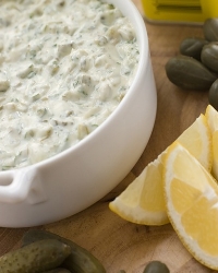 Соус тартар чимось нагадує майонез, багато хто навіть вважають, що його готують на майонезній основі, додаючи до неї дрібно нарізані мариновані огірки. Але ця точка зору не зовсім вірна. Хоча тартар, як і майонез, готується з яєчних жовтків і рослинного масла, жовток для цього соусу використовується варений, а не сирий. Варені жовтки ретельно розтирають з сіллю, додають до них перець, лимонний сік і рослинне масло. Масло найкраще використовувати оливкову, додаючи його буквально по крапельці, щоб соус придбав однорідну ніжну структуру. Наступний етап - додавання зеленої цибулі: зелень слід вимити, висушити і дуже дрібно нарізати. У вже готовий тартар додають за смаком подрібнений часник, мариновані огірки, корнішони, оливки, гірчицю.