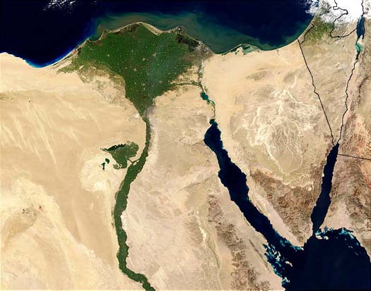 У 20 км на північ від єгипетської столиці Каїра починається зростаюча дельта Нілу з численними рукавами, протоками та озерами, яка тягнеться на 260 км уздовж узбережжя Середземного моря від Олександрії до Порт-Саїда. Вона утворилася на місці морської бухти, поступово заповнюючи річковими наносами. За площею (24 тис. Км²) дельта Нілу майже дорівнює Кримському півострову.