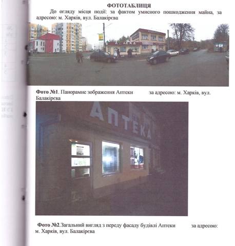 Начальник відділу прокуратури області Максим Блохін повідомив, що в травні 2016 року і листопаді 2017 року в Харкові невідомі тричі підпалювали аптеки однієї і тієї ж мережі. Загальна сума збитку, нанесеного пожежами, склала майже 325 тис. Грн. У момент підпалу в аптеках знаходилися провізори. На щастя, ніхто з них від вогню не постраждав.