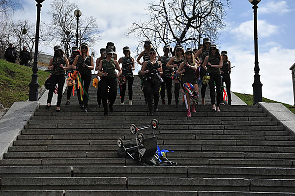 Акція була присвячена Міжнародному дню визволення в'язнів фашистських концтаборів. Сценарій акції був навіяний легендарним фільмом «Броненосець Потьомкін» Сергія Ейзенштейна. FEMEN вважає для себе принциповим відзначити цей день саме в Києві, в місті, яке найбільше постраждало від фашистської чуми.