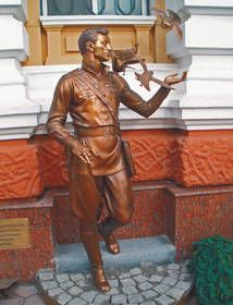 - Людина в міліційній формі тих років спускається сходами на спеціально відтворену бруківку одеської вулиці, ніби виходячи з того часу в наше, - пояснює автор. - В його кобурі пістолет, на грудях - знак за поранення і орденська колодка. Але ж це одеський міліціонер, який в душі залишається одеським хлопчиком. А мрією всіх одеських хлопчаків в ті часи були голуби. Тому бронзові птиці супроводжують нашого героя.