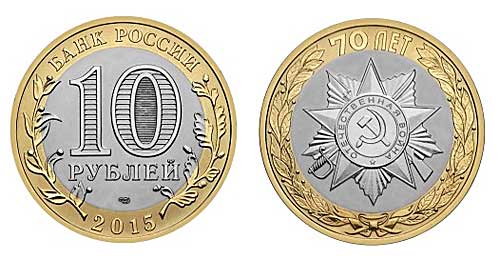 - Ціна 10 рублевих монет 2015 року, присвячених Перемозі у Великій Вітчизняній війні 1941-1945 рр., Як правило, не перевищує 30 руб.