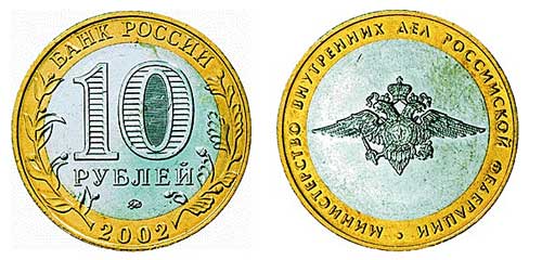 - У 2010 р паралельно з біметалічними почалося виробництво пам'ятних грошових знаків номіналом 10 рублів зі сталі з гальванічним латунним покриттям.