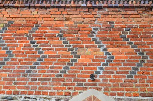 Цегляна кладка замкових стін - вендського типу, де для зв'язування рядів цегли в них чергуються два «ложка» і один «стусан» (т.зв. Балтська або вендская кладка). Треба окремо відзначити, що в "моді" в XII-XVI століттях були готична і вендская кладка - цеглу часто фарбувалися в чорний, коричневий, зелений і жовтий кольори, що надавало будові щось "ієрусалимське". Все-таки замки будувалися не просто так, з міркувань суто військової доцільності, - німецькі лицарі-тамплієри сприймали їх як Земний Єрусалим (той, справжній, південний, з Гробом Господнім, був їм недоступний). І декоративний ефект такого прийому в наявності, все-таки в старовину красу великих гладких поверхонь, як в архітектурі 20-21 століть, оцінити не могли - естетика була інша.