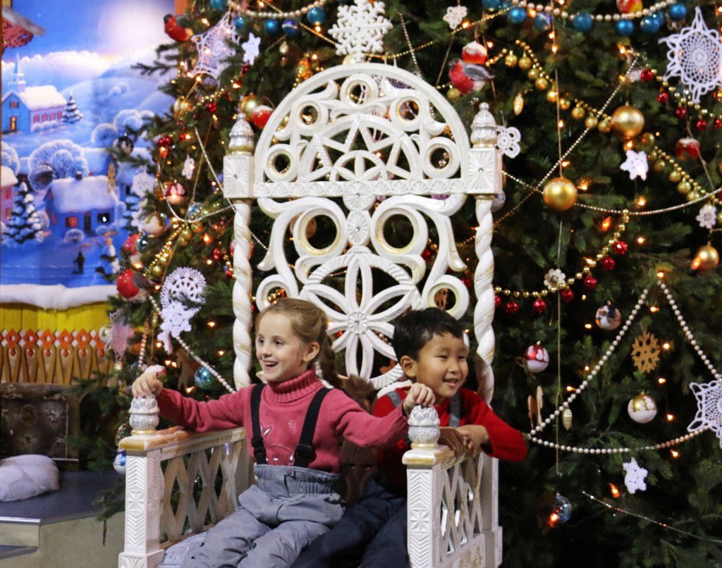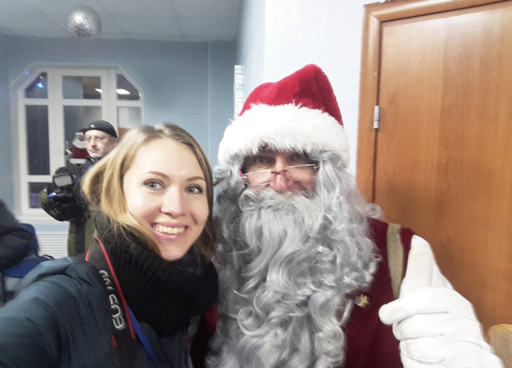 Дід Мороз намагається особисто зустрітися з усіма своїми гостями. Познайомитися з ним вдалося і мені. Веселий, сильний і дуже добрий він не робить різниці між дітьми і дорослими. Всіх пригощає цукерками, з усіма фотографується, зацікавлено слухає вірші та чуйний на прохання.