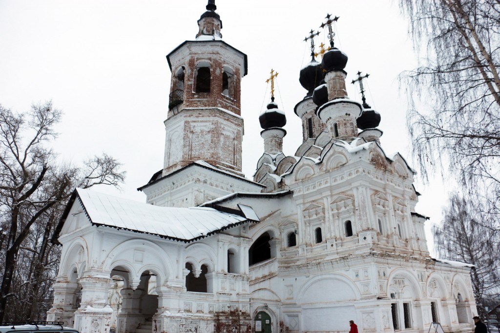 Сюжети ікон не зовсім канонічні і більше нагадують зображення світського життя. А ще там є дзвіниця, з якої прекрасно видно околиці і Великий Устюг, оточений хвойним лісом.