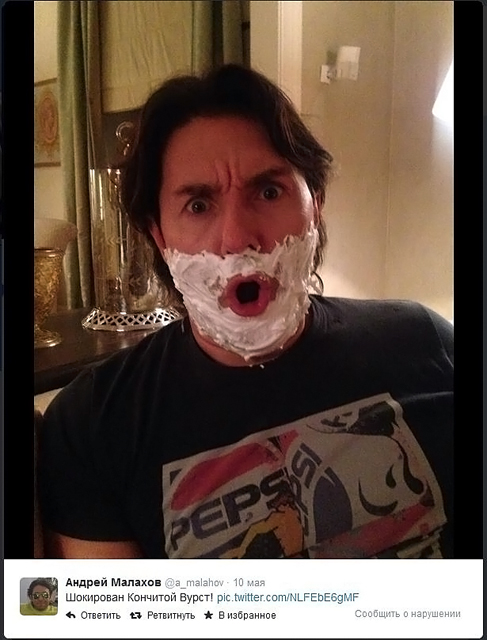 Тим часом, після оголошення імені переможця цього конкурсу в Рунеті тисячі блогерів приєдналися до акції "Доведи, що ти не Кончіта" : Користувачі, в тому числі знаменитості, масово збривають бороди і викладають в Мережу свої фото з "голими" підборіддями.