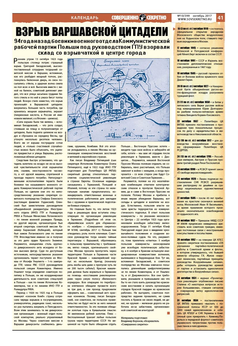 Зрозуміло, поляки на цю невигадливу комбінацію відповіли категоричною відмовою у пропуску Червоної Армії, та й самі в Східну Пруссію не полізли. Тому Москва і вдалася до інших заходів переконання Варшави, ось склади в цитаделі і злетіли в повітря. Природно, польська влада почала арешти терористів з комуністичного підпілля. У відповідь польські комуністи - за вказівкою московського Центру - 22 жовтень 1923 організували загальний страйк залізничників. Тоді 31 жовтня Юзеф Пілсудський видав указ про введення надзвичайного стану і створення військово-польових судів. На що, зрозуміло, теж прилетіла «ответка» 5 листопада польська комуністи анонсували вже загальний політичний страйк, а 6 листопада в Кракові спалахнули ініційовані комуністами хвилювання, які вилилися в барикадні бої. Тут же, згадував Бесєдовський, за радянських повпредство з Москви щогодини посипалися довжелезні шифротелеграми «і по лінії Комінтерну, і від Уншліхт, і від Дзержинського». Всі вони вимагали, вказували і наказували «будь-що-будь взяти керівництво краківським повстанням і почати організацію загонів Червоної гвардії з краківських робітників». Чи не вигоріло, радянське посольство завдання провалив, не зумівши послати до Кракова ні своїх людей, ні грошей, ні зброї - залізниця не працювала через страйк, організованої радянської ж агентурою!