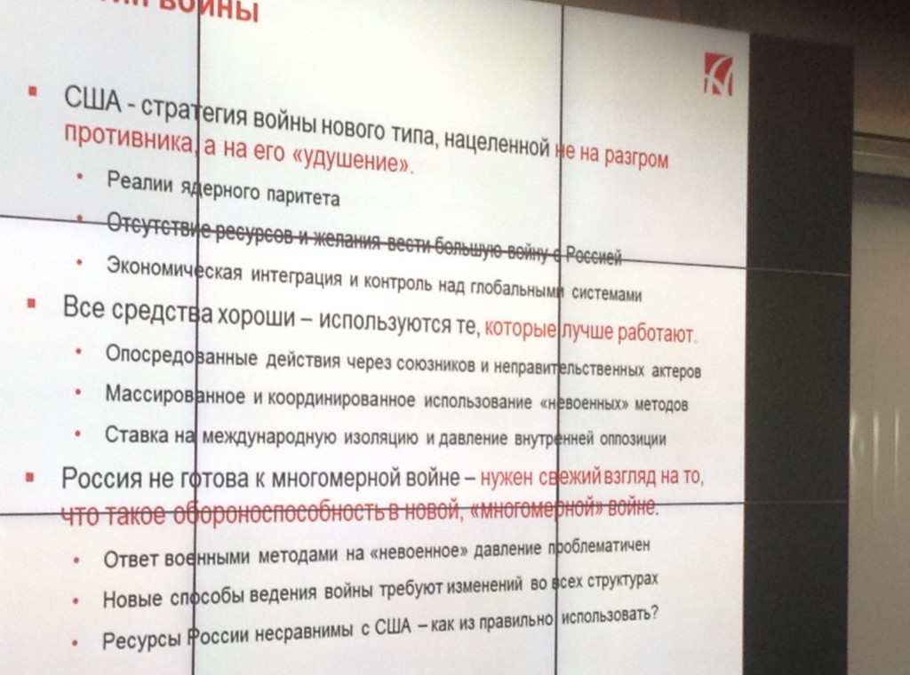 Григорій Григорович розповів, що рівень агресивності США, Німеччини та Польщі по відношенню до Росії, в порівнянні зі станом до кризи на Україні, виріс в 10 разів. Ця агресивність підтримується і в західних ЗМІ. Фактично проти нас ведеться інформаційна війна. Змінився і підхід до планування збройних сил (країн НАТО). Тепер підхід повернувся до старого зразку - призначається противник і під загрози з його боку розвиваються збройні сили (країн НАТО).