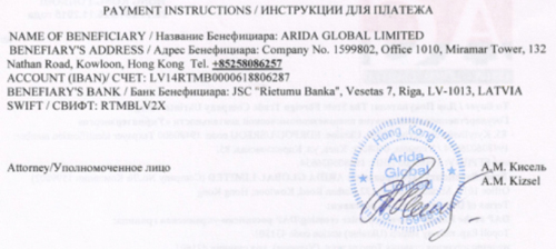До речі, в інвойсі, наданому Arida Global Limited ДП "Укрінтеренерго", банком, який обслуговує гонконгівську компанію, указанлатвійскій Rietumu Banka - один з найбільших в Балтії. Однак нещодавно банк опинився в центрі великого скандалу.