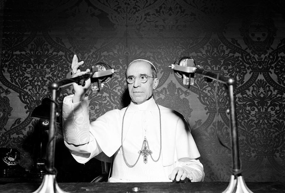 Папа Пій XII під час ефіру радіостанції «Радіо Ватикану», 1947 рік. фото: