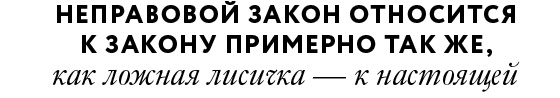 Легко уявити собі несправедливий закон. Звідси неминуче випливає нетотожність права і закону, а також поняття неправового закону, виражене Блаженним Августином в іншій відомій юридичній максими: lex iniusta non est lex, тобто «несправедливий закон - і не закон зовсім». Неправовий закон відноситься до закону приблизно так само, як помилкова лисичка - до справжньої.
