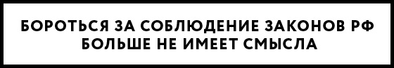 І тому, на мою оціночним думку, боротися за дотримання законів РФ більше не має сенсу. Так-так, ніяких «дотримуйтесь ваші закони» і «увійдіть в, будь ласка». Коли Путін ще готовий був хоча б іноді робити вигляд, що Конституція Російської Федерації - діючий документ, це ще мало сенс. Тепер - не має.
